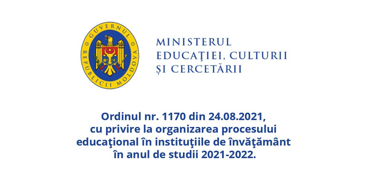 Ordinul nr. 1170 din 24.08.2021, cu privire la organizarea procesului educaţional în instituţiile de învăţământ în anul de studii 2021-2022.